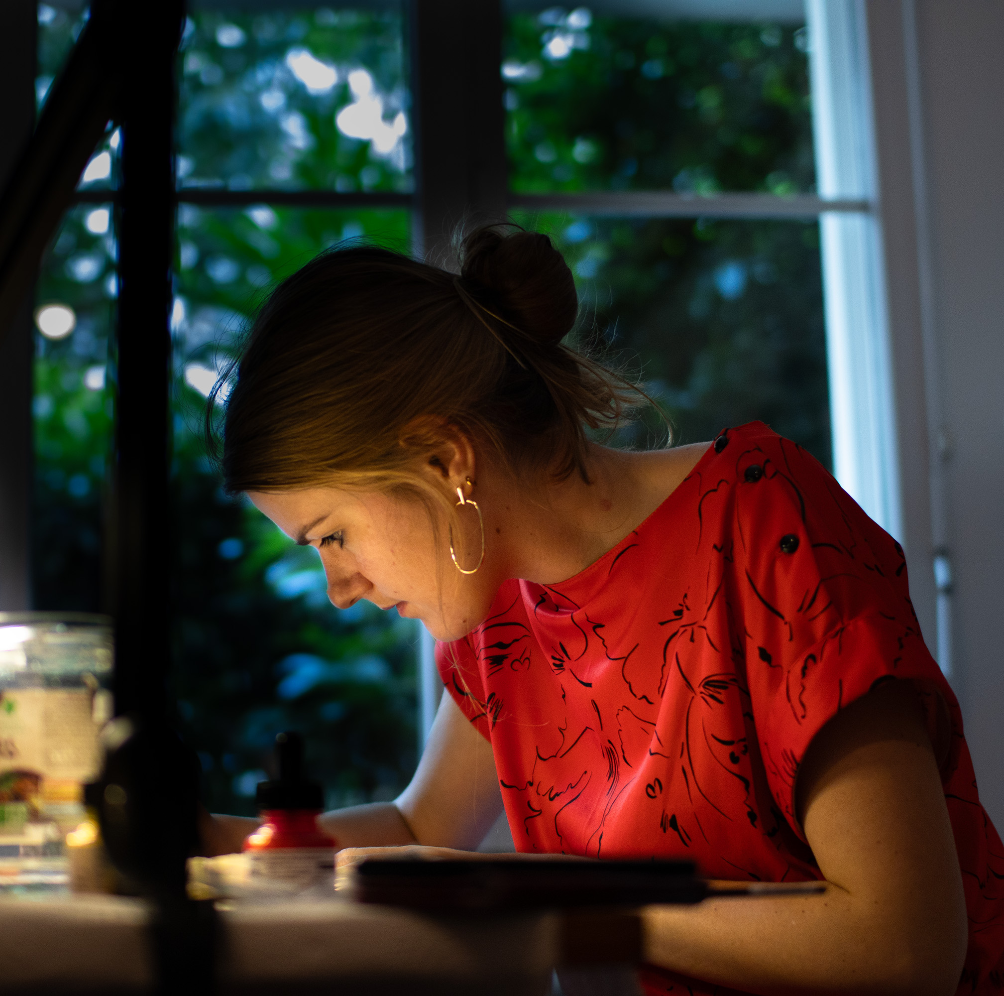 J’aime créer des œuvres minutieuses, qui appellent à une observation rapprochée. Cette recherche du détail et de la précision du geste je l’explore à travers diverses techniques telles que la peinture, le dessin, le modelage et la gravure.